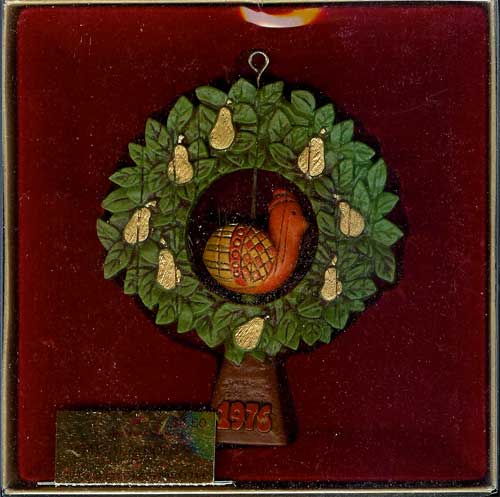 This 1976 Hallmark Keepsake Ornament features a partridge that twirls inside of the center of the ornament, which is a tree filled with other partridges.