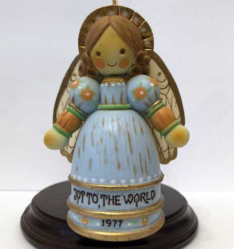 This 1977 Hallmark Tree Trimmer Ornament features an angel in a blue dress.