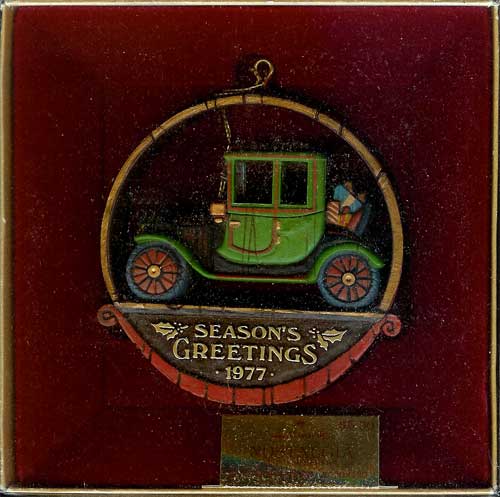 This 1977 Tree-Trimmer Hallmark Ornament features an antique car from the Nostalgia Collection.
