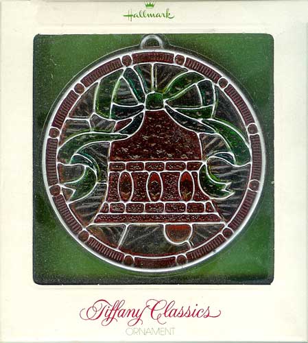 This 1977 Tiffany Classics Hallmark Ornament features what appears to be a stained glass Christmas bell. This ornament is from the Colors of Christmas Collection.