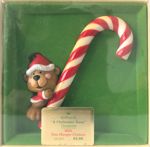 Re-issued in 1980. Candy cane is the tree hanger with a “Santa” bear holding on to it