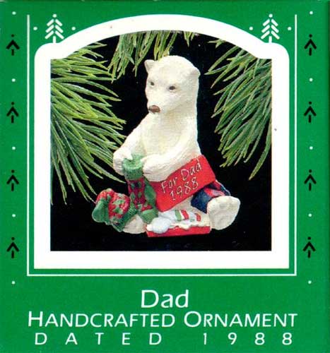This 1998 Hallmark ornament has a father polar bear opening his Christmas gifts.