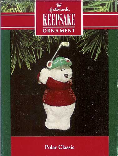 This Keepsake Ornament features a polar bear playing golf, and was originally produced and released by Hallmark in 1991.
