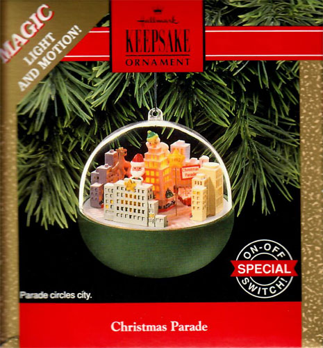 Light and motion ornament. Plugs in to standard light string. Watch the parade march around the city.