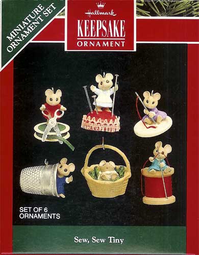 1992 Sew, Sew Tiny, Six Mice, Miniature1992 Hallmark Miniature Ornament Set