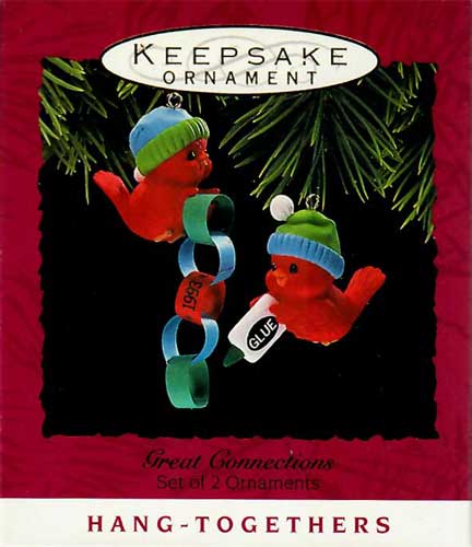 This set of 2 “Hang-Togethers” features two red birds with matching winter hats gluing a paper chain.