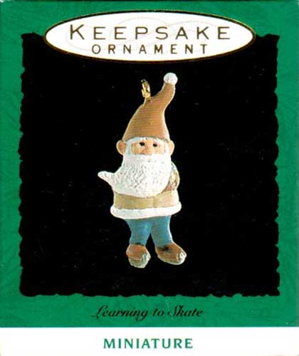 This 1993 Keepsake Miniature Ornament has an elf learning to ice skate.