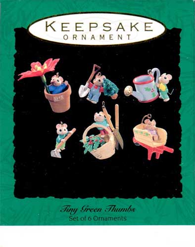 This set of miniature Keepsake Ornaments features six mice doing various gardening chores.