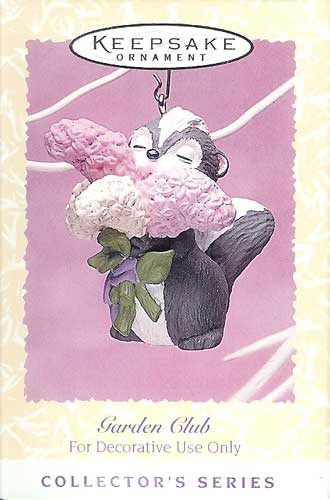This 1996 Hallmark Spring Keepsake Ornament features a skunk enjoying the smell of some lilacs.