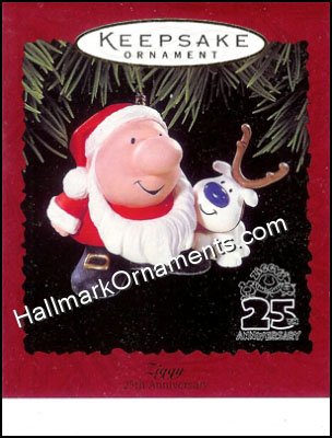 This 1996 Hallmark Keepsake Ornament helps commemorate the 25th anniversary of Ziggy.