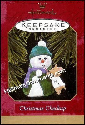 A little mouse takes care of his ill snowman friend by taking his temperature. This Keepsake Ornament was originally produced and released by Hallmark in 1997.