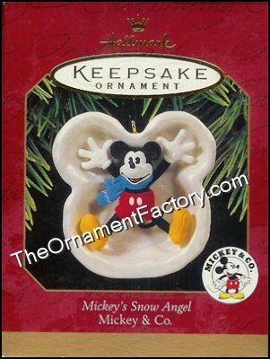 This 1997 Hallmark Keepsake ornament finds Mickey Mouse making snow angels, a fond Christmas memory for almost every one.