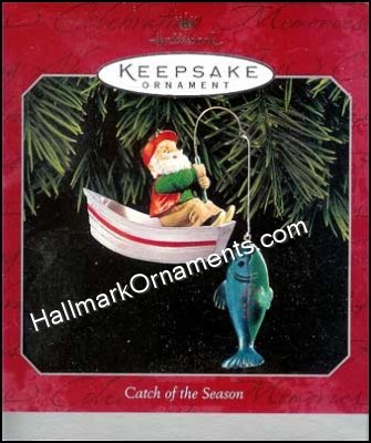 Santa seems to have hooked a big one! This Keepsake Ornament was originally produced and released by Hallmark in 1998.