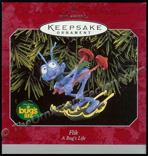 From a Hallmark Keepsake Ornament, Flik is from thw 1998 animated film, A Bugs Life. Flik is an ant trying to get the attention of the ants and especially Princess Atta. Artist: Ken Crow