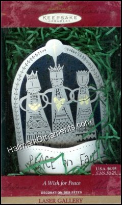 Blue, white and gold laser cut 3 kings. This Keepsake Ornament was originally produced and released by Hallmark in 1999.