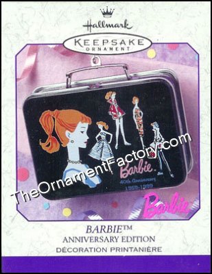 Who didn’t want to carry a lunchbox to school? This lunchbox commemorates Barbie’s 40th anniversary. The Hallmark Ornament is made of pressed tin and opens and closes.