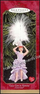 Lucy gets to keep up with her friends that have landed roles in movies in this 1999 Hallmark ornament, “Lucy Gets in Pictures” – from the classic television series I Love Lucy.