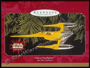 This 1999 Hallmark Keepsake Ornament features the Naboo Starfighter from Star Wars Episode I – The Phantom Menace.