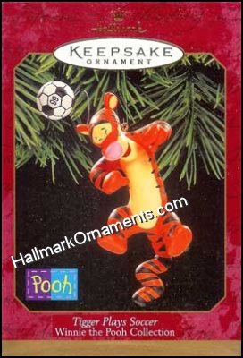 This Hallmark Keepsake Ornament has Tigger jumping up and down and getting ready to use his head to return the soccerball. Size: 4 1/2″ H