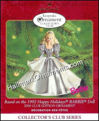 This Hallmark Keepsake Ornament is based on 1992 Happy Holidays Barbie Doll.
