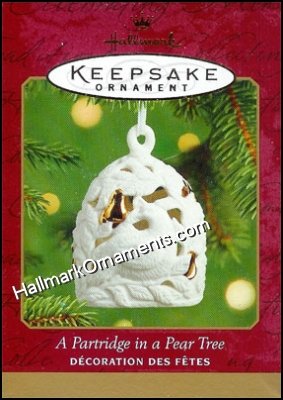 This 2001 Keepsake Ornament is made of porcelain bell with 24K-gold accents