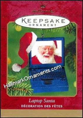 This 2001 Hallmark Keepsake ornament features Santa using a laptop.