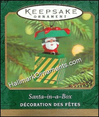 This Keepsake Ornament was originally produced and released by Hallmark in 2001. A jack (I mean Santa)-in-the-box!