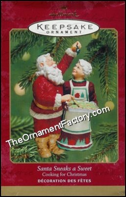 Each year, Mrs. Claus and her North Pole friends bake enough cookies for everyone in the workshop, then make some extras, knowing cookies always seem to “disappear” whenever Santa’s around. Look for Mrs. Claus’ special helpers in the other “cooking for Christmas” ornaments for 2001.