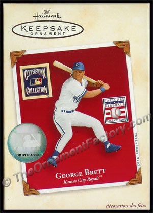 Looking ready to belt one out of the park, Kansas City Royals George Brett is featured in this 2002 Hallmark Keepsake Christmas ornaments.