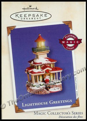 A unique ornament – Inspired by the open, inviting architecture of the Gulf Coast region. Hurrying out on the veranda to welcome a visitor, Santa has left his red coat and cap inside the lighthouse. Mrs. Calus, however, has wrapped a shawl around her shoulders to ward off the chill of an unexpected snowfall. Their penguin friend is delivering gifts by rowboat this year!