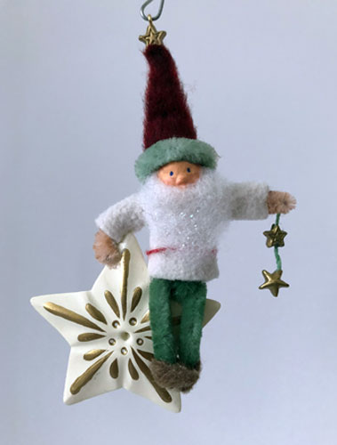 Comes in red velvet pouchTammy has taken some inspiration from her personal collection of gnome figures and given it a twist. Gnomes usually spend their time in the forest, but this one is being treated to a ride above the treetops on a nighttime star.
