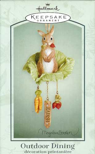 This 2003 spring Keepsake ornament features a mischievous rabbit that has come to feast in a delicious vegetable garden.