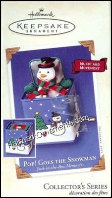 Turn the crank on the side of the ornament to hear “Pop Goes the Weasel” and to see the snowman pop out of the box.