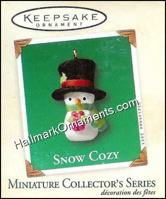 This Keepsake Ornament was originally produced and released by Hallmark in 2003. A miniature snowman with a festive, holiday top hat.