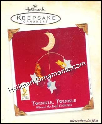 Hanging on stars, Winnie the Pooh and Tigger are floating under a cresent moon. This Hallmark Keepsake Ornament was released in 2003. Artist: NA