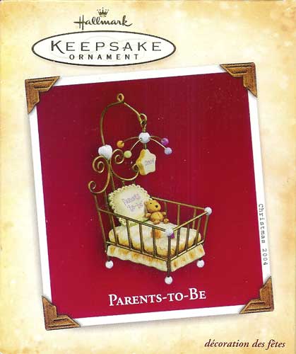 The pillow reads “Parents to be”, and the mobile as “2004” on the star.