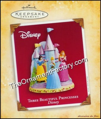 Who doesn’t love the Disney princesses? Snow White and Cinderella are standing in front of the castle. This Hallmark Keepsake Ornament was released in 2004.  Size: 4½” H