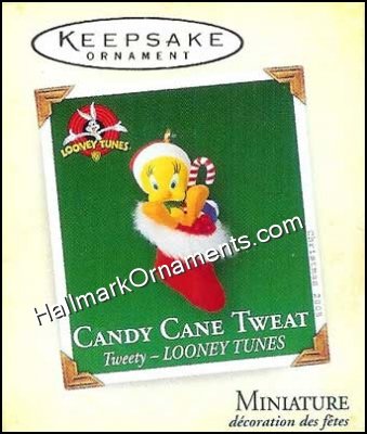 Tweety is in a red stocking with a candy cane. This Miniature Keepsake Ornament was originally produced and released by Hallmark in 2005. Looney Tunes