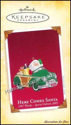 This 2005 Hallmark Ornament is a colorway, (or repaint) of the 1987 Here Comes Santa, Santa’s Woody, and was issued in limited quantities.