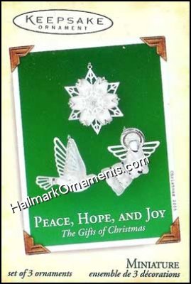 Set of three miniature Hallmark ornaments. This Miniature Keepsake Ornament set was originally produced and released by Hallmark in 2005.