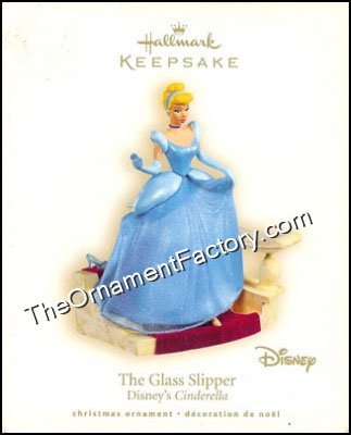 As the clock is striking midnight, Cinderella descends the stairs of the castle and she loses one of her glass slippers. This Hallmark Keepsake Ornament has Cinderellas gown made of fabric. Artist: Anita Marra Rogers