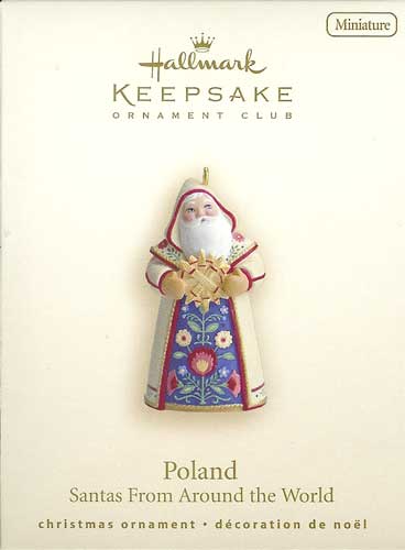 This ornament features Santa Claus dressed in traditional Polish apparel.