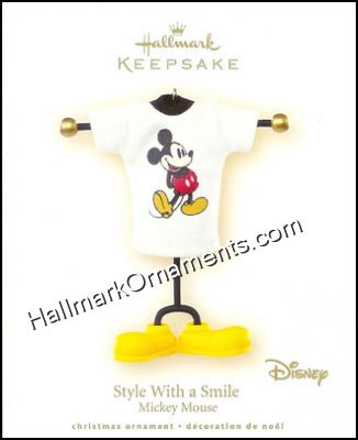 Who doesn’t like a Miceky Mouse T-shirt? A Hallmark Keepsake Ornament creation has a Mickey Mouse T-shirt displayed on a mannequin that has Mickey like shoes as the base. Artist: Robert Hurlburt