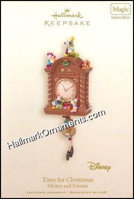 Watching the clock anticipating when Christmas will arrive, the Disney characters move when the cord is pulled. This is a Hallmark Keepsake Collector’s Club Holiday Open House Exclusive Ornament. Artist: NA Size: 5 1/2″ H