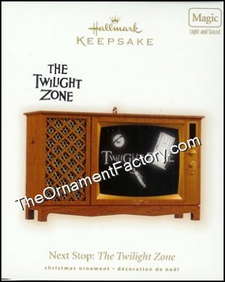 Be prepared to be taken to: The Twilight Zone. Press the button on the ornament to hear The Twilight Zone music and see the glow of the TV.