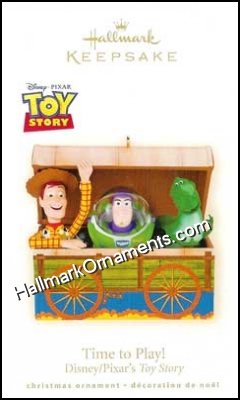 What will we find in the toy box? There is Woody, Buzz and Rex from Disney’s movie, Toy Story. This Hallmark Keepsake Ornament was released in 2009.