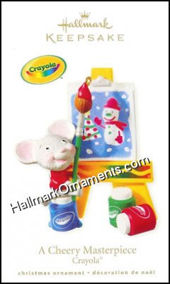 This Hallmark ornament features a little gray mouse and his over-sized paint brush, finishing a winter masterpiece.
