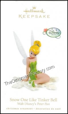 Tinker Bell is sitting on top of snow in this Hallmark Keepsake Ornament. This Hallmark Ornament was released in 2010.