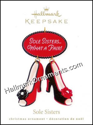 This 2010 Hallmark ornament reads “Sole Sisters … What a Pair!”