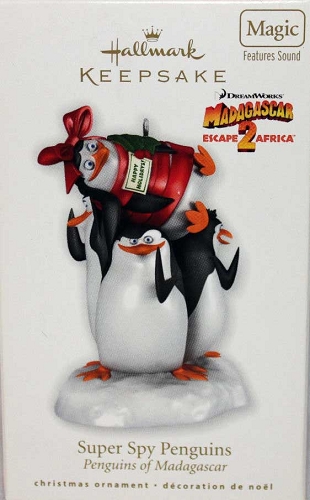 Press the button on the ornament to hear some fun phrases from The Penguins of Madagascar.
